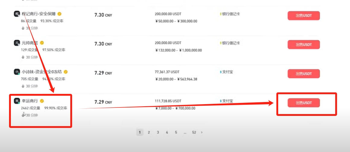 这时候我们就可以去筛选下方的这些商家了。究竟哪一个商家相对来说,更值得信赖呢?我们首先来看一下他的成交量和成交率,当然都是越高越好。