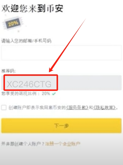 在币安注册时需输入XC246CTG,以享受20%的手续费折扣。