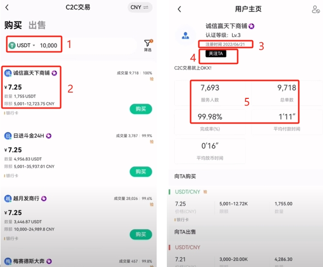 接下来我们来到买币的商家界面。我来教大家如何筛选靠谱的商家。