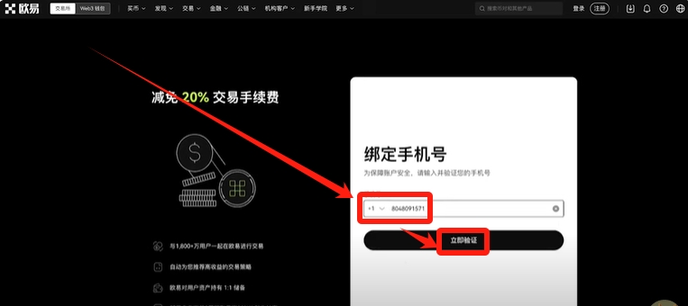 按照要求绑定你的手机号,这里我以美国的号码来进行演示。点击【立即验证】。