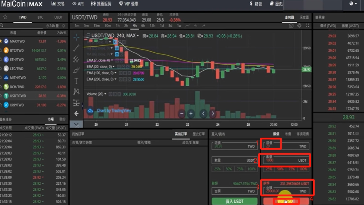 然后你就再点击【交易】,一样选择USDT/TWD的交易对。