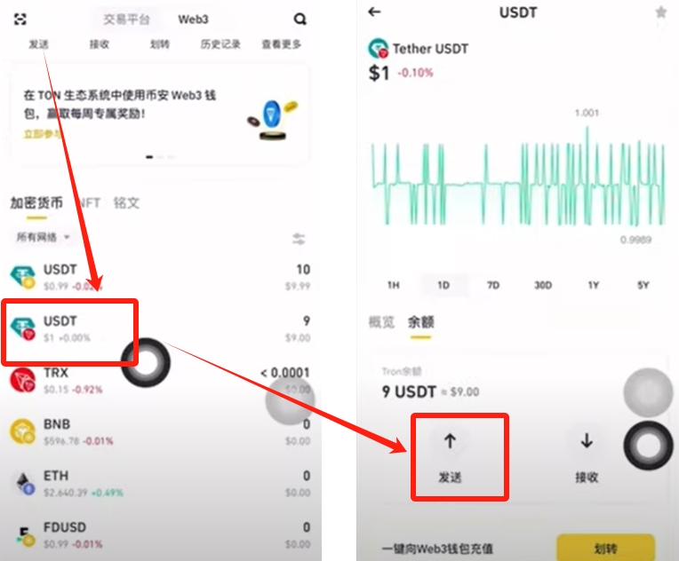 买完USDT之后,怎么把币安交易所的USDT,0手续费转到币安的Web3钱包里面?
