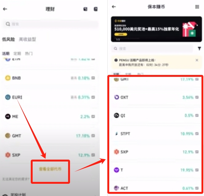 剩下的一些其他的币当然也有高的,点击“查看更多”,下面的一些山寨币就不建议大家入手了。这就是币安的理财。