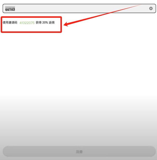 然后你就能够发现这里使用邀请码41322075,就能够获得20%的返佣。所谓的返佣指的是这个手续费你该交多少还交多少,只不过他会每一个小时为你自动返还手续费的20%,这个地方是一定要填的。如果不填之后所有的手续费都是按原价去交的。长久以往是能够损耗不少的费用的,这部分能省则省,因为没有任何的成本。