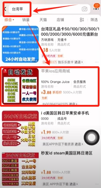 我们打开淘宝,搜索“台湾苹”,然后我们随便选择一家。