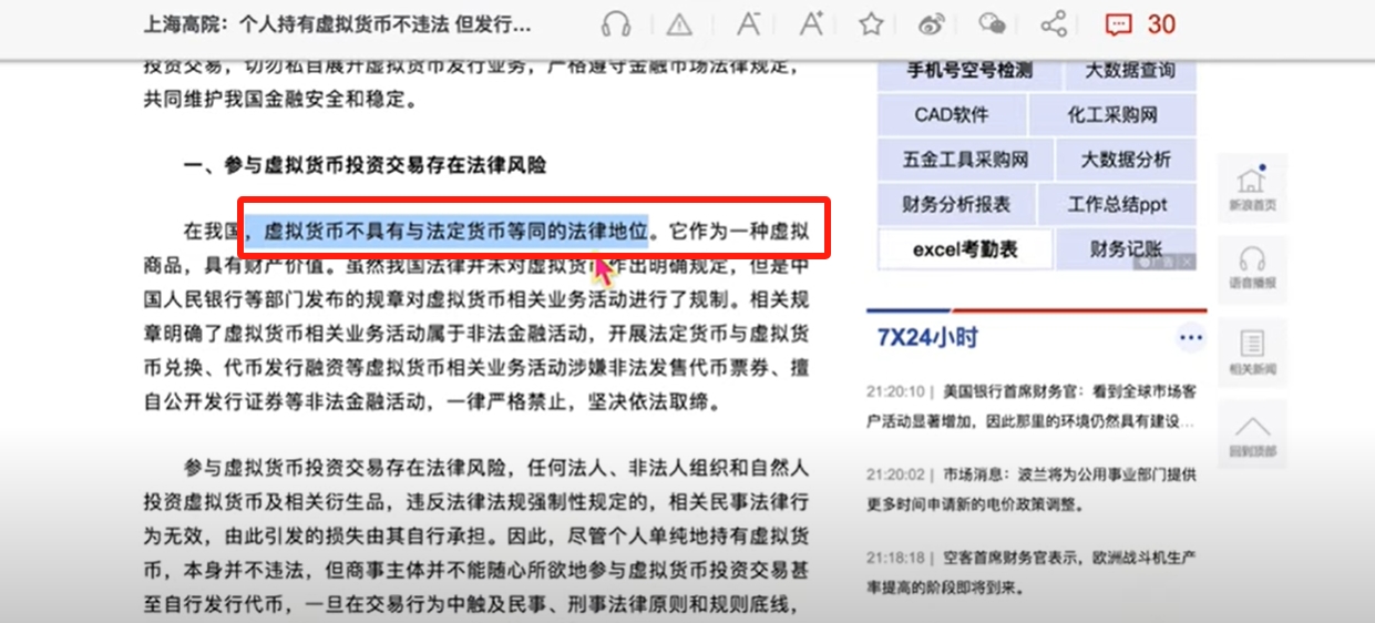 在24年底的时候,上海高院就对一起虚拟货币相关的案件做了判定。这个案件其实着重说明了两点。第一就是如果你发行代币就是违法的,但如果你是个人持有虚拟货币是不违法的。