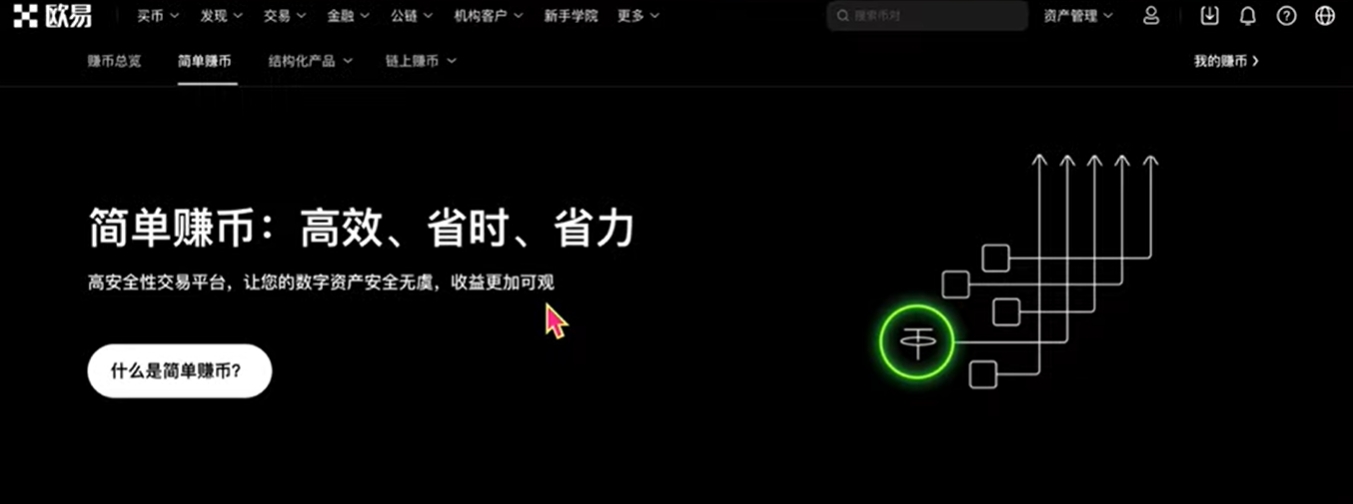 第二个能够稳健赚钱的方法就是简单赚币,这是OKX非常有名的一款产品,相信老用户都在日常使用。新客不知道我就简单的来介绍一下。