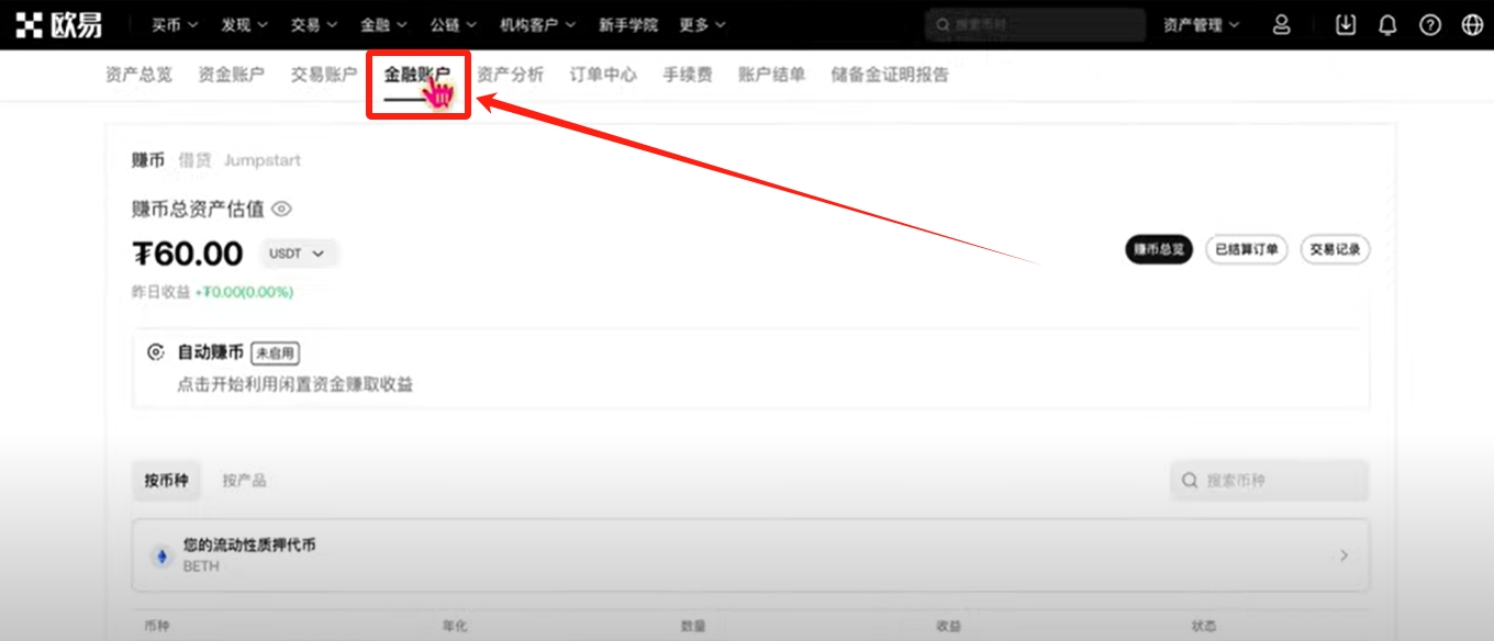 简单赚币其实是可以自动来进行申购的,并不需要你每一单都亲自用手操作。你只需要在“金融账户”这里找到简单赚币。