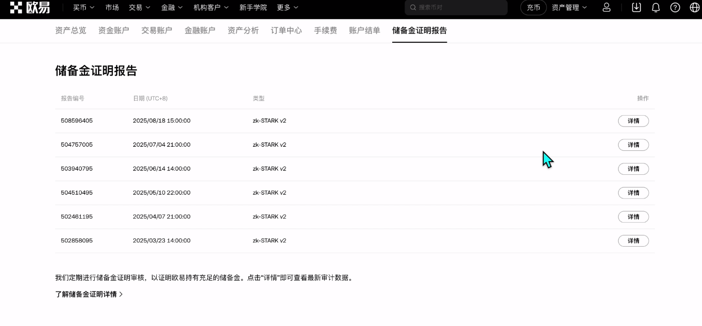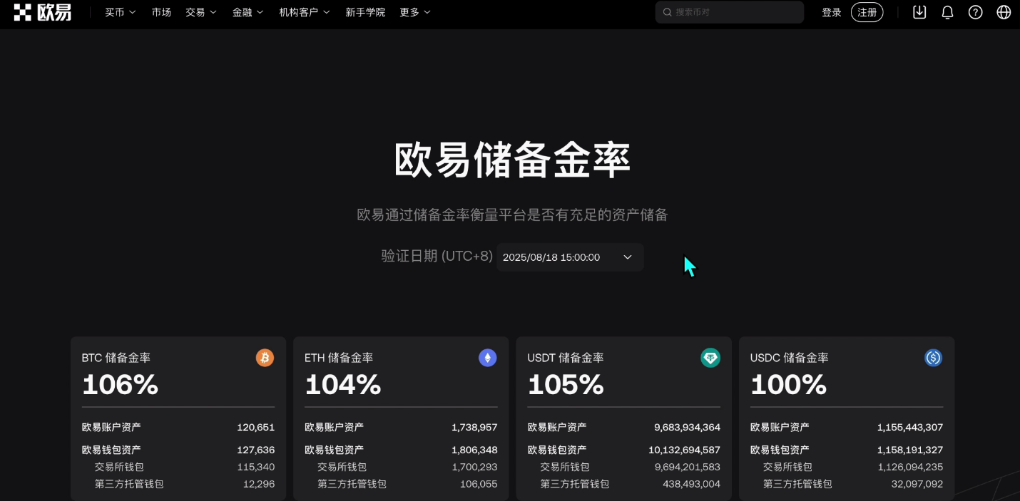 可以看到它的每一项币种几乎都是超额储备的,所以我们完全不用担心有币提不出来的情况。并且它的验证也是实时更新的,是有充足的资产储备,能够满足我们用户的提币需求的。