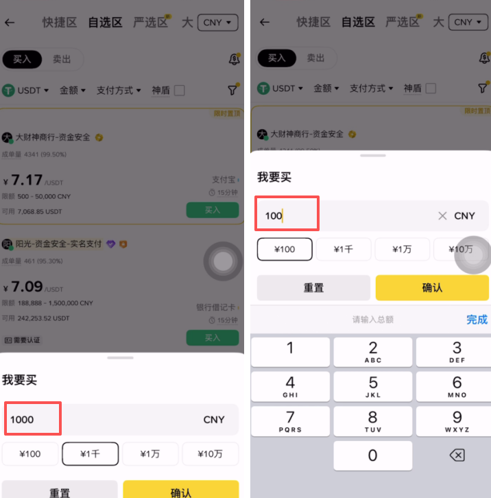 一千元人民币能买多少USDT?在欧易和币安USDT的价格是否一致?本篇文章就来为你演示,在欧易和币安小额,哪怕只有1000元能买到多少USDT。