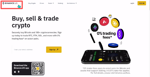 点进来之后你就会发现你的网址,包括它这里的标识都变成了binance.us,这个压根就不是币安的国际站了,也不是我们常说的币安。