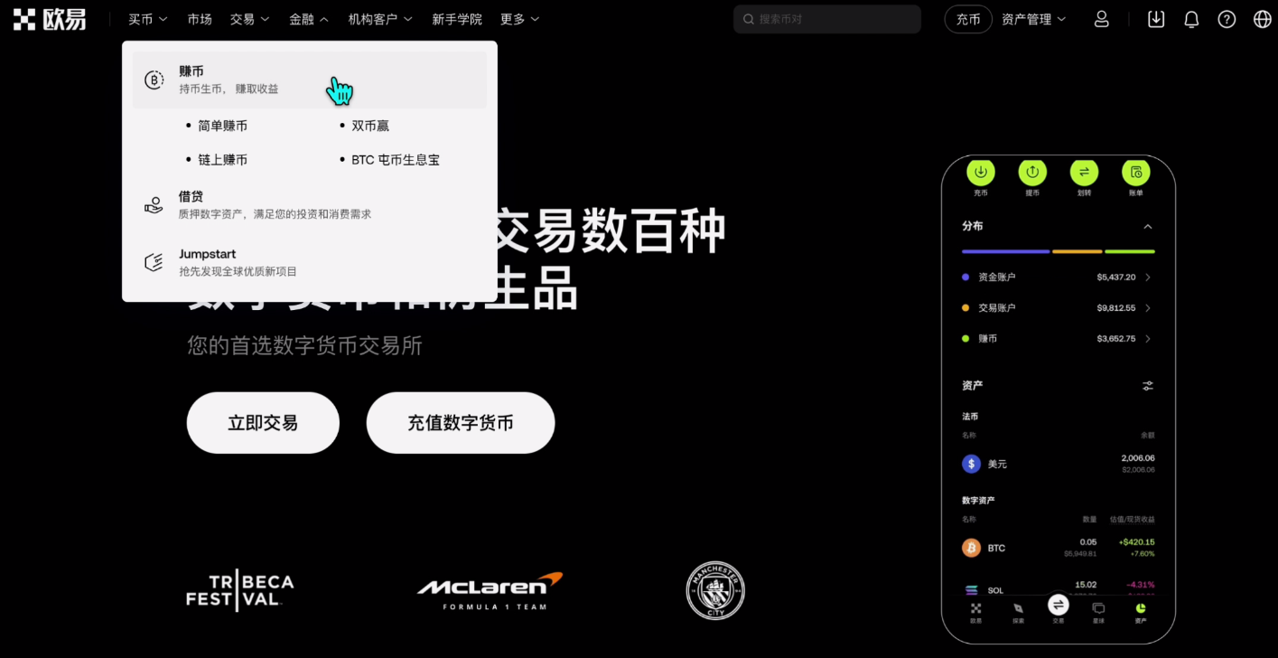 以及它格式各样的交易赚币功能。这些东西完全是能够满足我们去使用的。而且欧易交易所还有一个巨大的特点,就是它的APP是所有交易所里面最好用的,功能最简洁、最直观,同时各项功能还能做的特别丰富。欧易交易所在APP的应用性层面其实是排到第一位的。