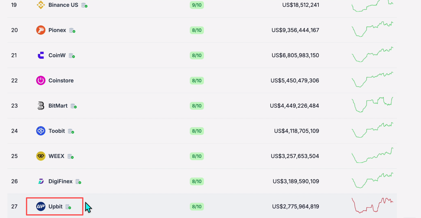 我们再换一个第三方的测评网站Coinmarketcap,这个也是比较权威的。在它的加密货币交易所里面币安也是第一。