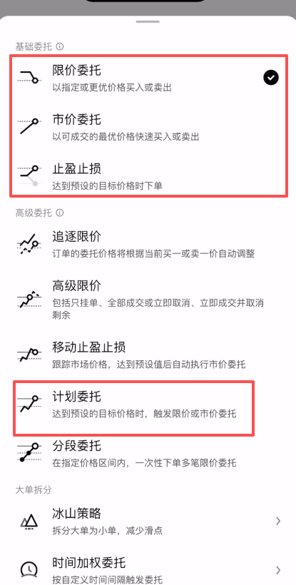 今天我们来分享币圈合约交易不同的成交形式,常用的几种有现价委托、市价委托、止盈止损以及计划委托。