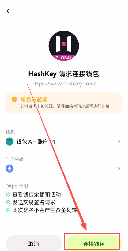 连接成功之后我们回到Hashkey,点击下方的【签名】,选择【确认】。