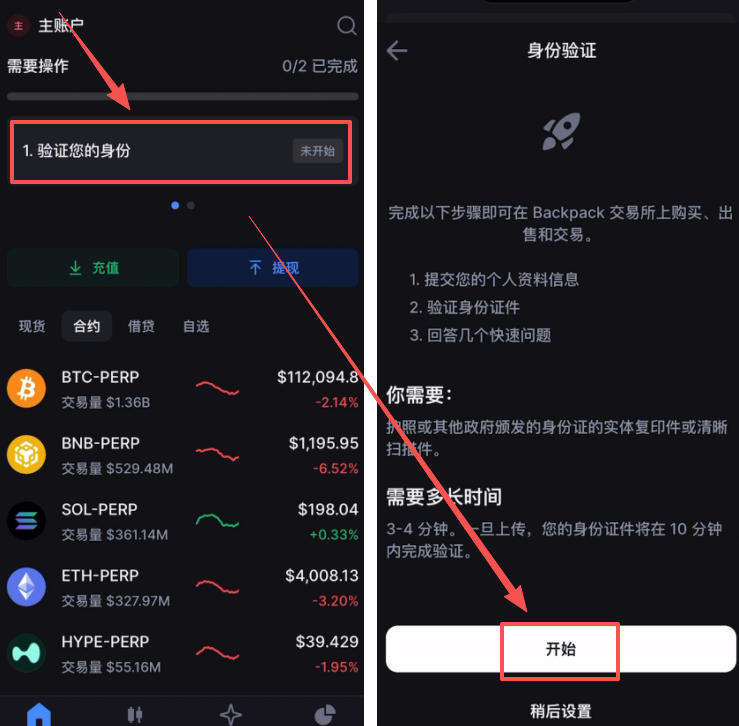 祖册成功之后,它会要求我们验证您的身份,我们点击。再点击【开始】。