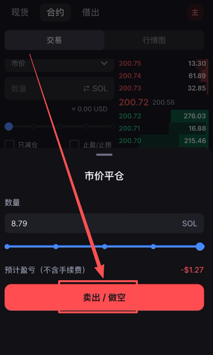 点击【卖出/做空】,这样我们这个合约的单子就又平掉了。