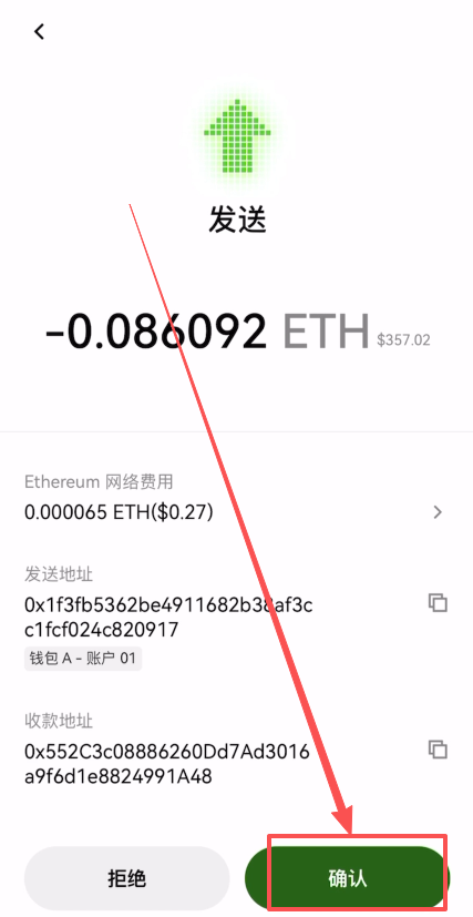 接下来我们一定要确认好这个地址首位是不是相同的,然后再点击【确认】。