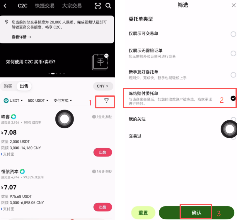 冻结赔付就是当你因为这笔订单而导致银行卡被司法冻结,欧易会给你赔付的。当然给你赔付的钱肯定是来自C2C商家押金的。通过这种形式,欧易尽可能的限制商家不去作恶。