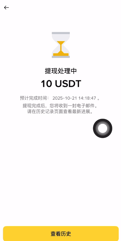可以看到提现正在处理中,我们稍微等一会去欧易查看。