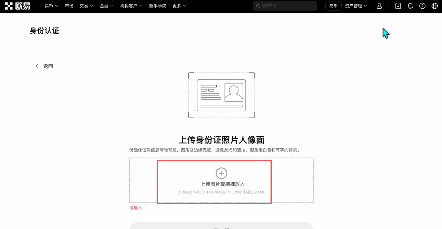 注册成功之后需要我们去完成一下身份认证,才可以去自由的使用欧易的各种交易功能。我们选择【立即认证】。