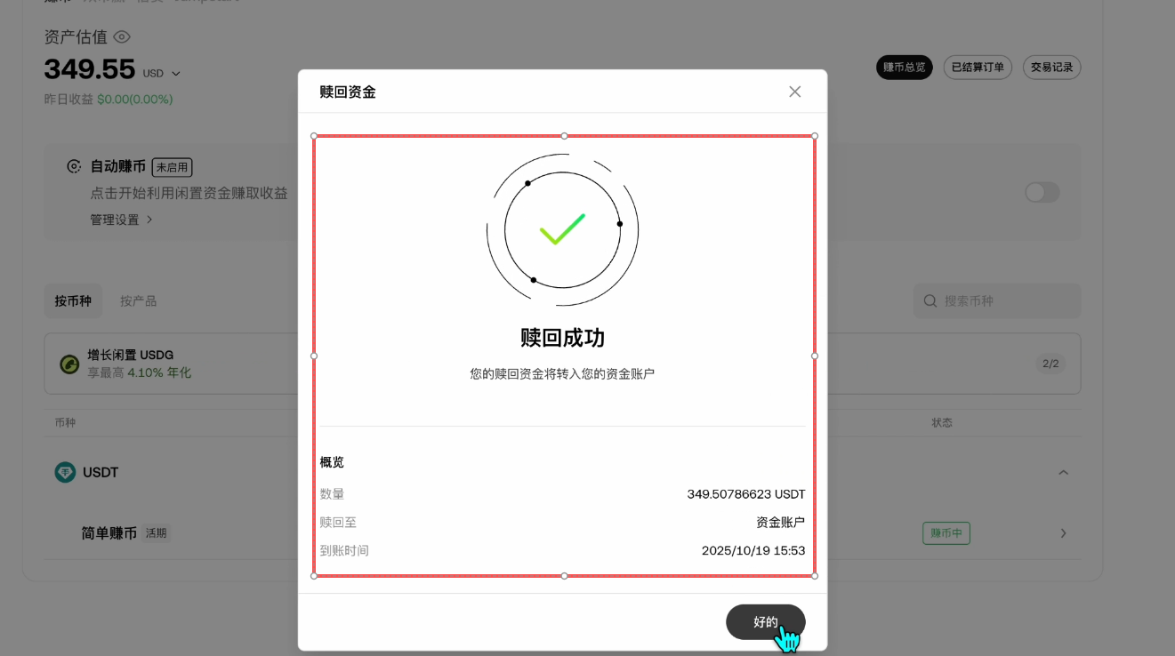 这样我们的USDT就申购成功了。