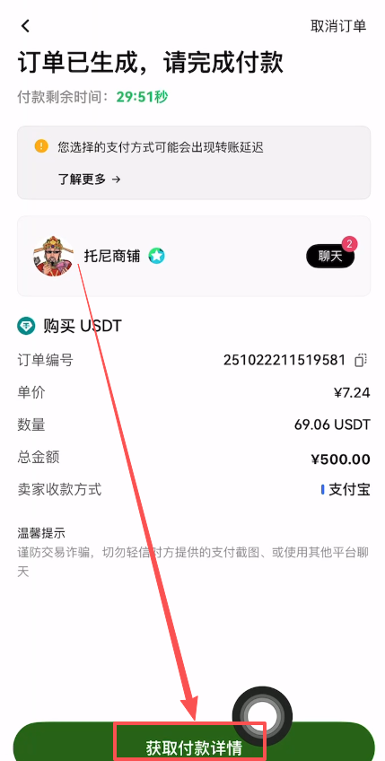 点击下方的【获取付款详情】。
