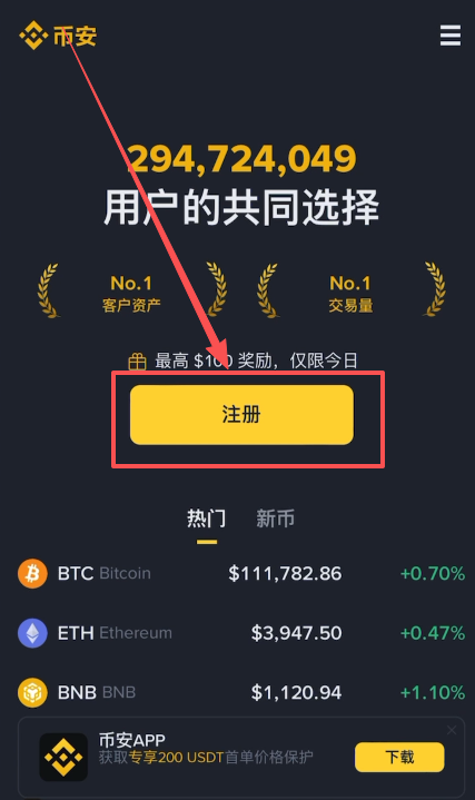 今天给大家分享如何注册币安、下载币安APP、并在币安内购买加密货币的教程。