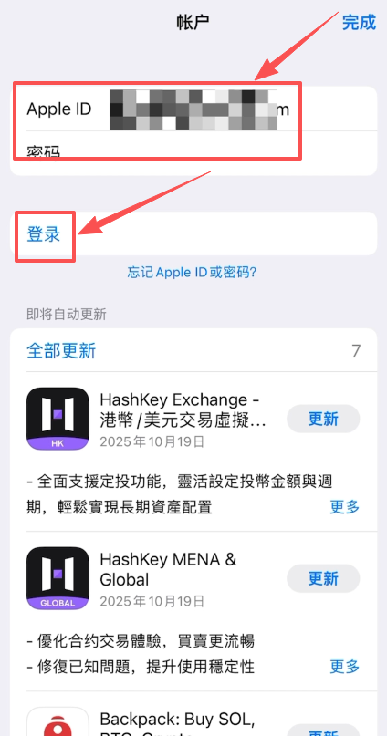 然后在上方输入进我们购买好的中国台湾区的apple ID。点击【登录】。