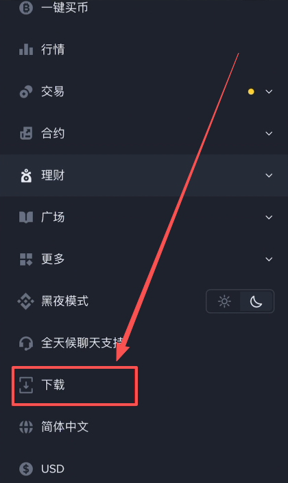 如果你是安卓手机的用户,我们就可以直接在币安的官网这里点击右上角的三条杠。