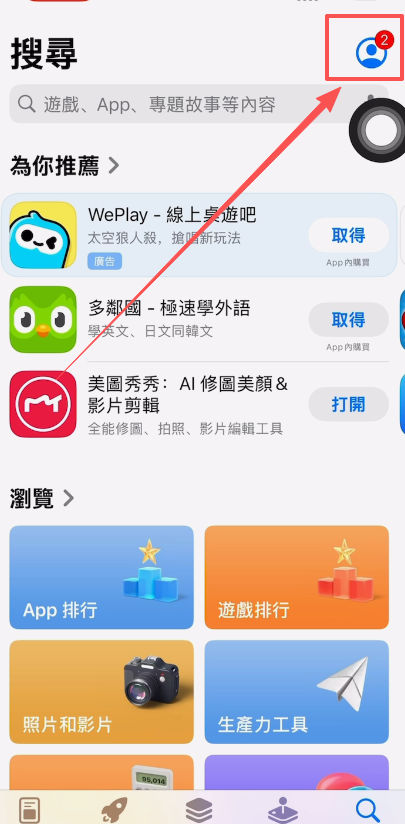 购买好之后打开你的appstore,点击右上角的小人头像。