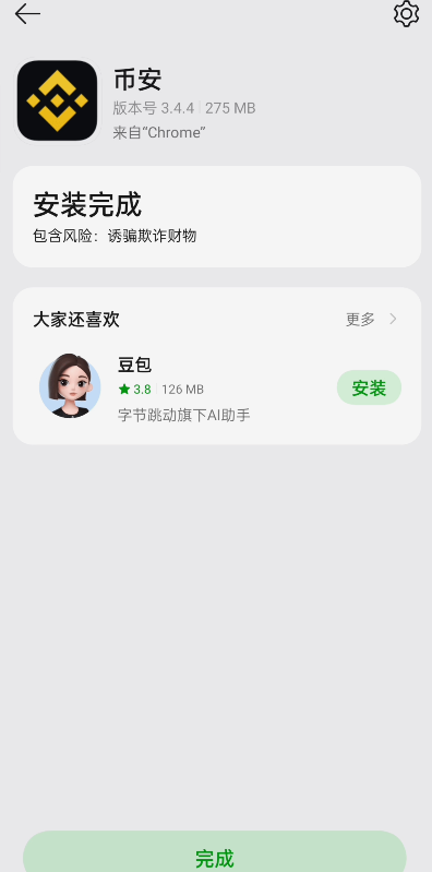 这时候我们就安装完成了,我们的币安交易所就已经下载好了。