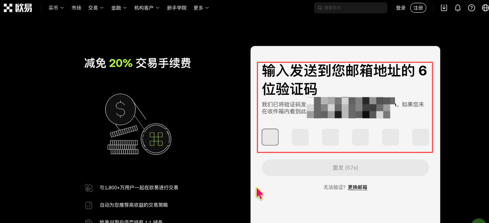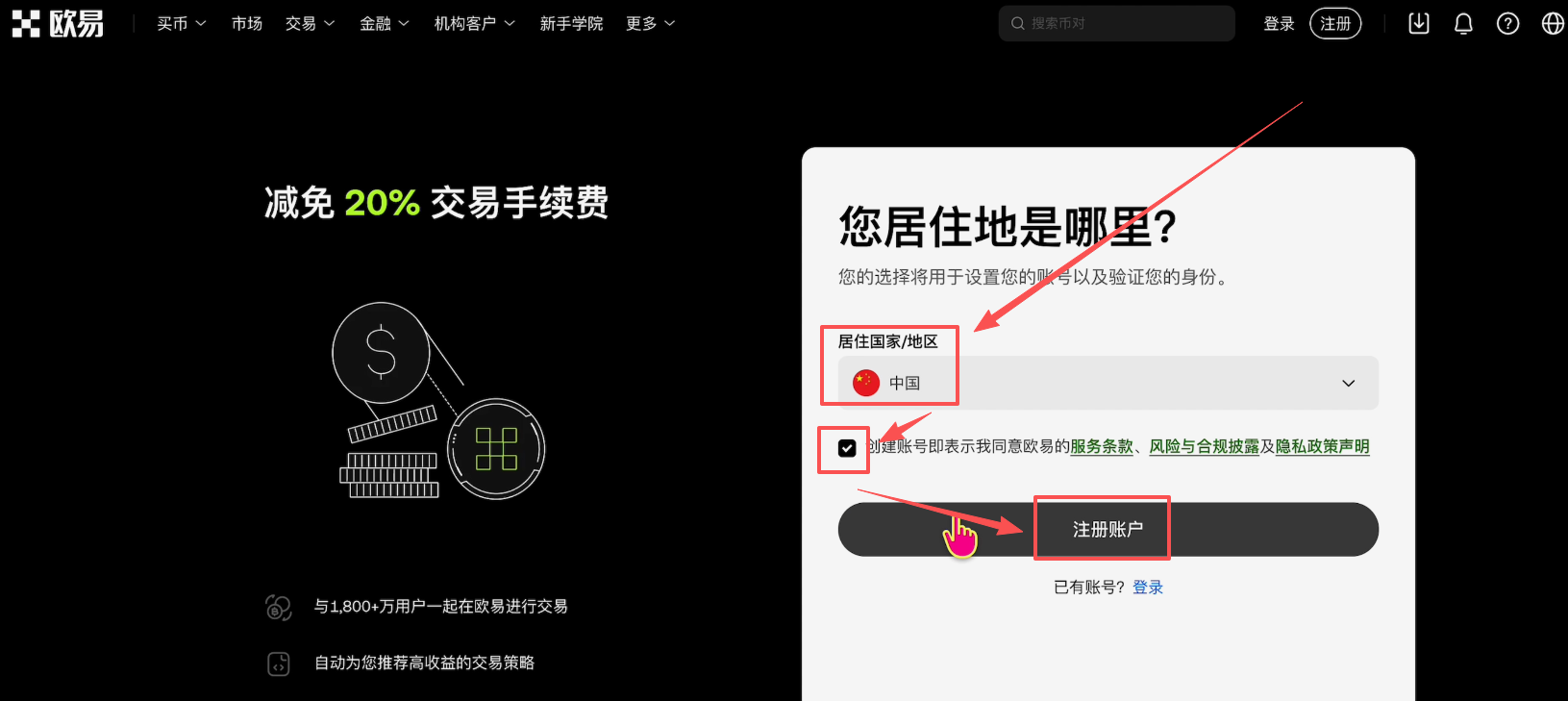 首先,我们先去注册一个欧易账户,还没有注册欧易账户的朋友,可以打开我下方欧易的注册链接,使用我的链接注册,能够永久节省20%的手续费优惠。