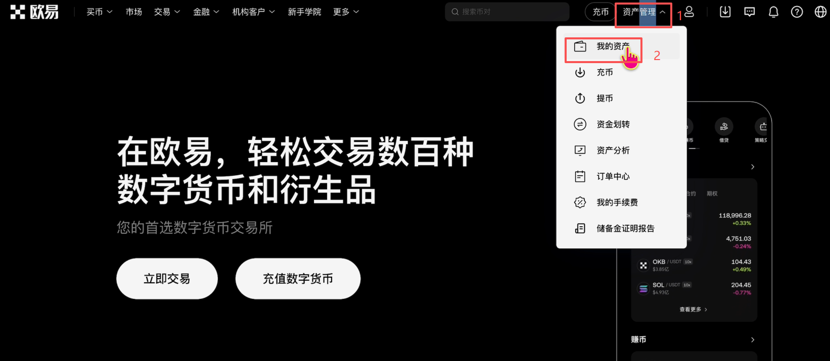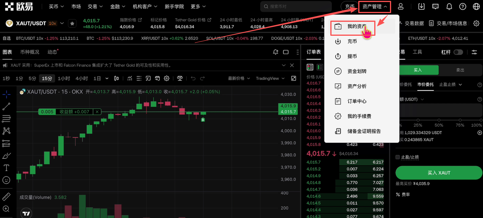 下单成功之后,我们点击上方的【资产管理】,找到【我的资产】。