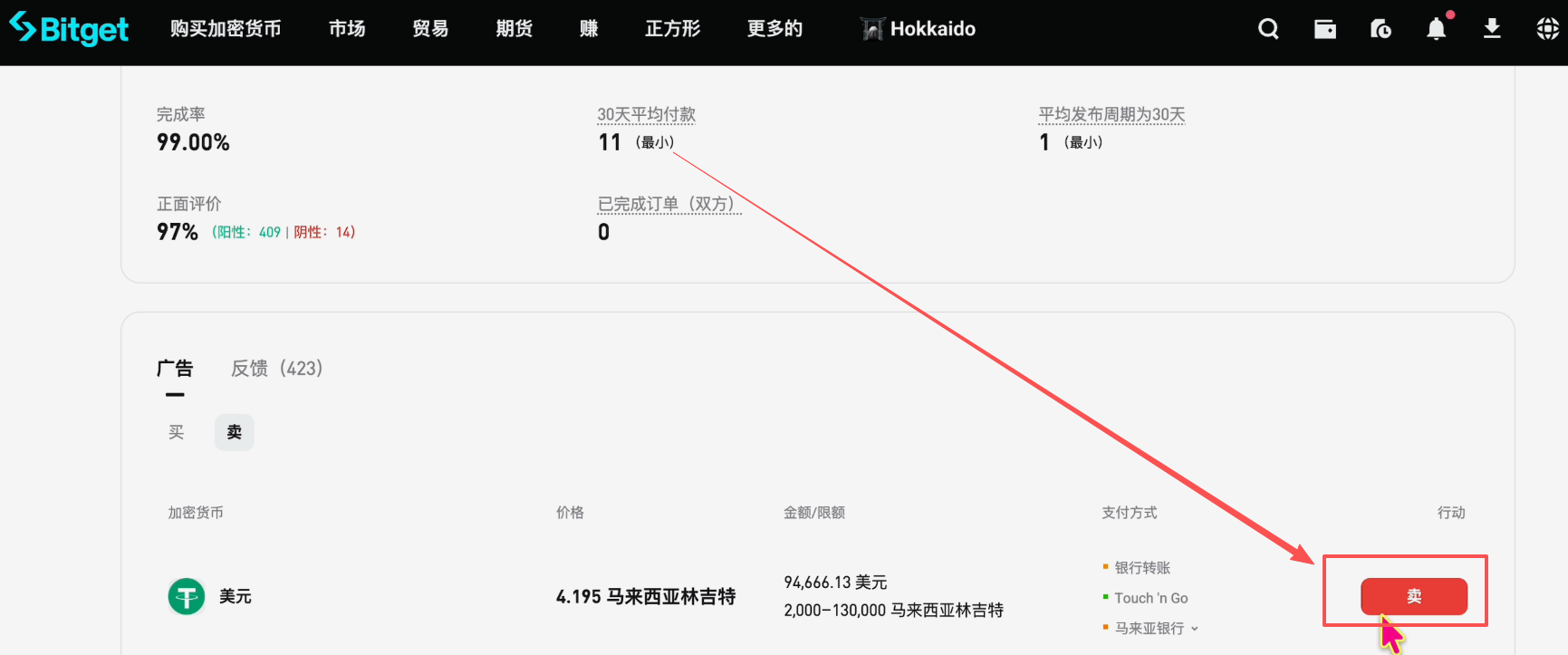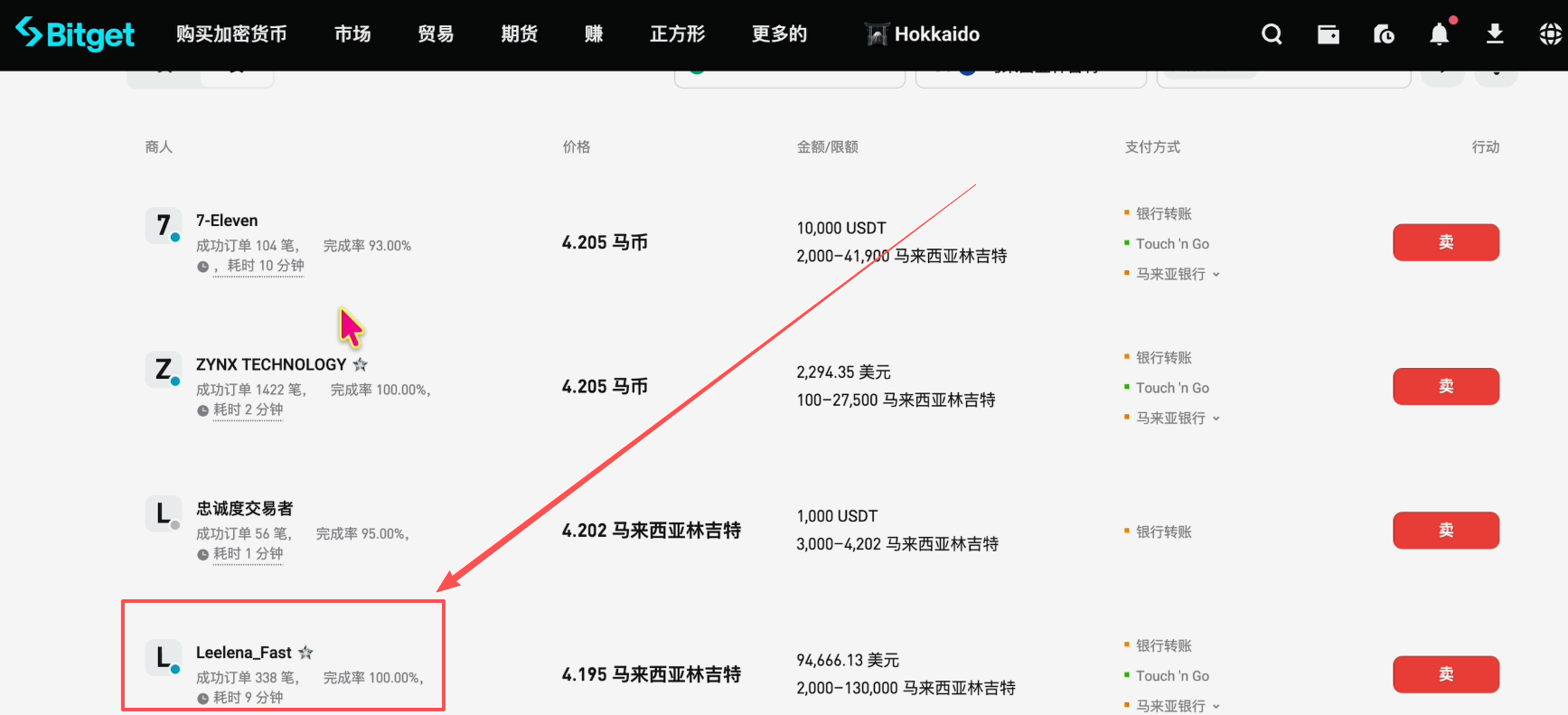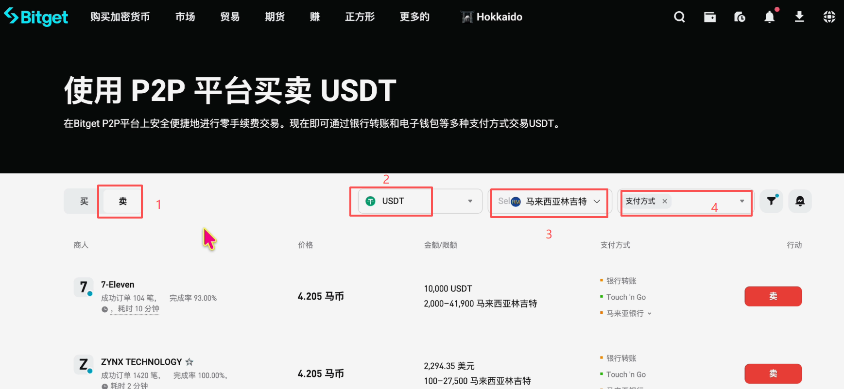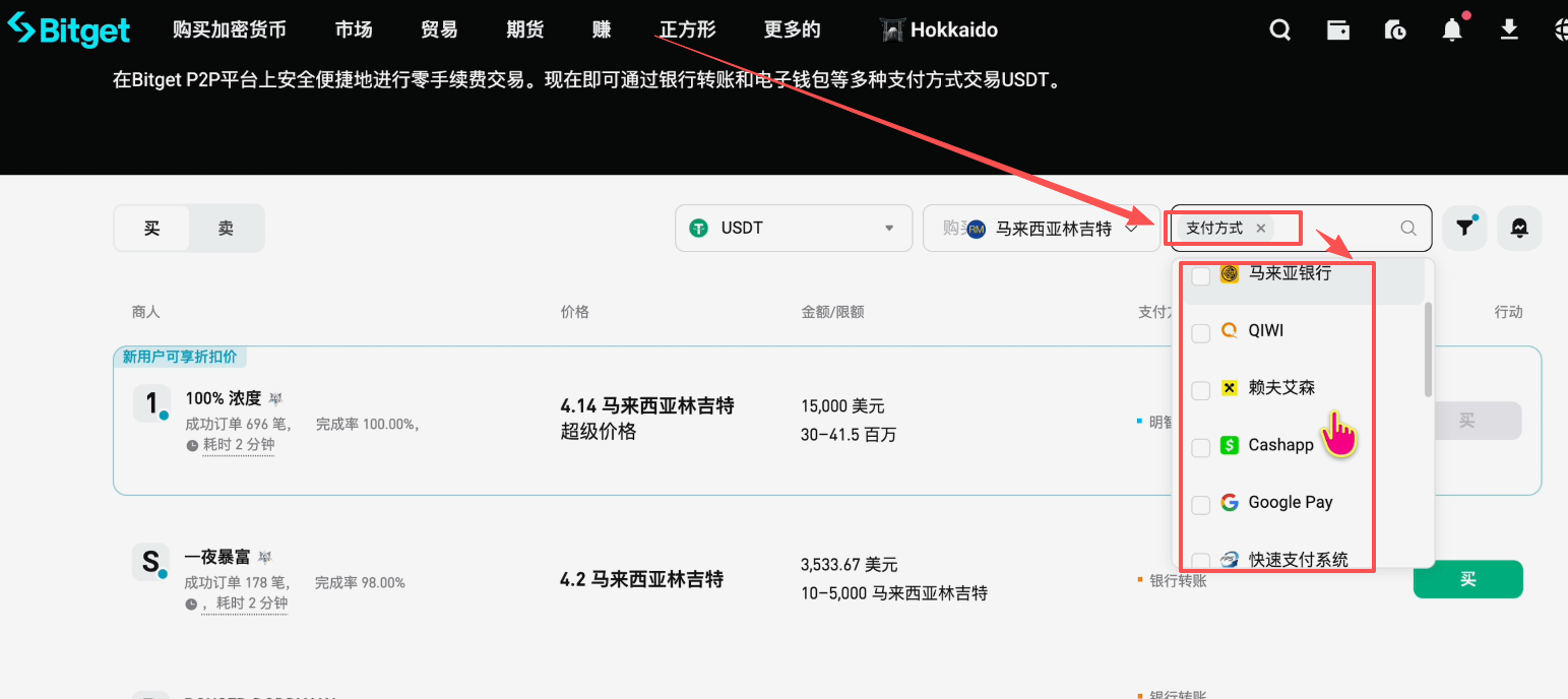 要卖的币种同样还是USDT,我们要卖成的是Malaysia令吉,支付方式就是我们的收款方式,你习惯使用哪种方式就可以选择一下。