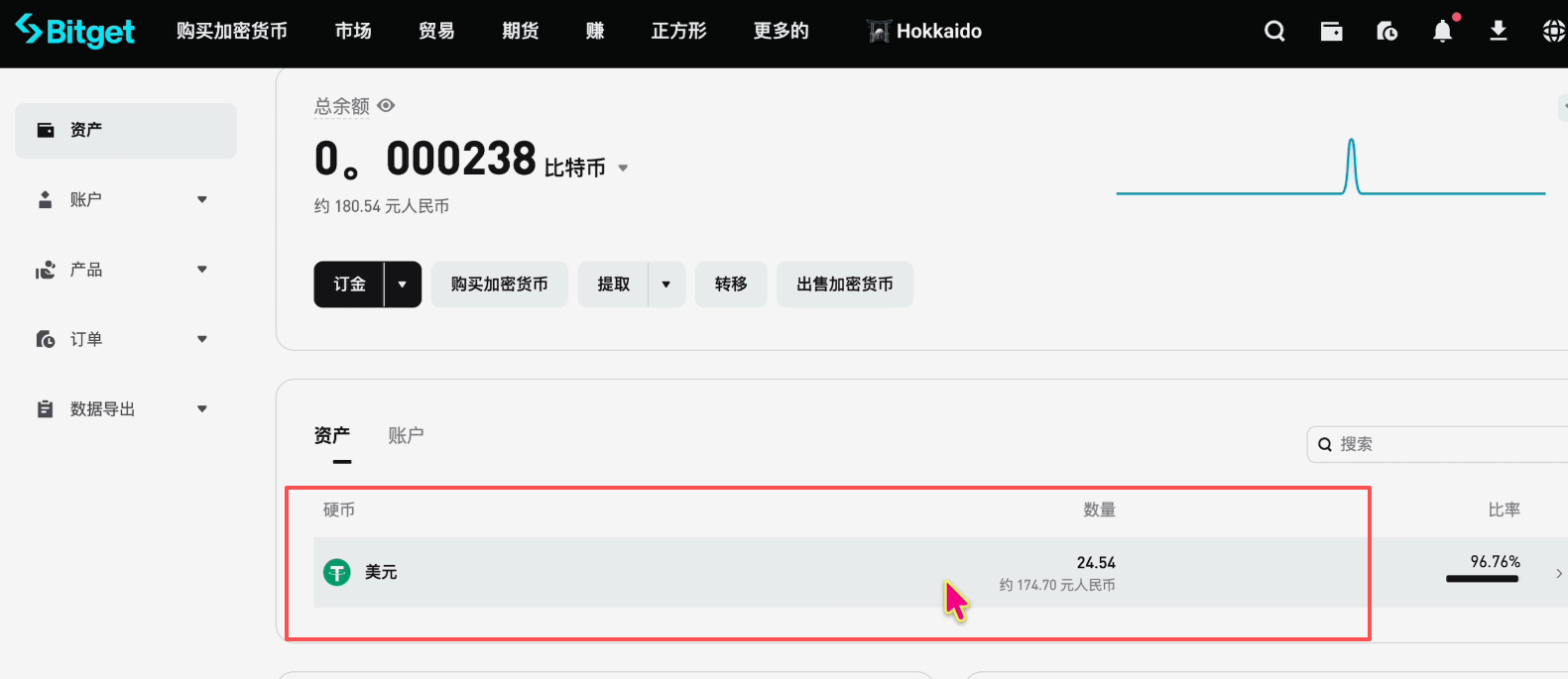 现在我们的比特币就已经卖出成功,换成了USDT了。我们还是回到我们的资产。
