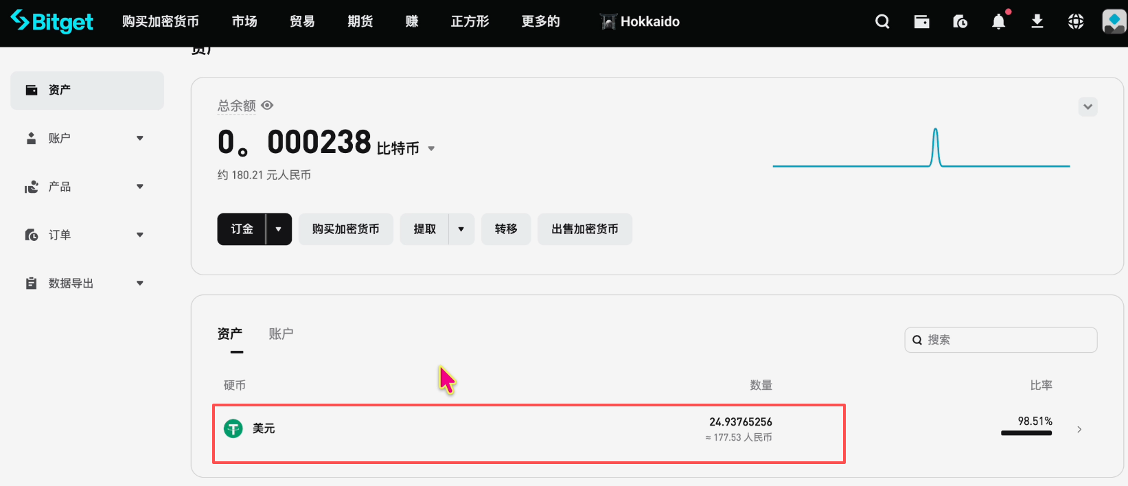 在我们的资产账户里面就可以看到我们购买好的USDT了。