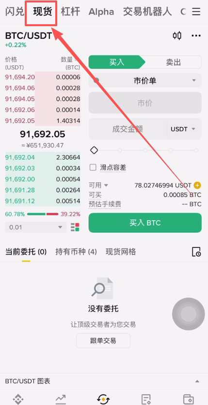 如果你的币安钱包里面已经储值完加密货币了,接下来我们就来进行一下,现货交易的实际操作。