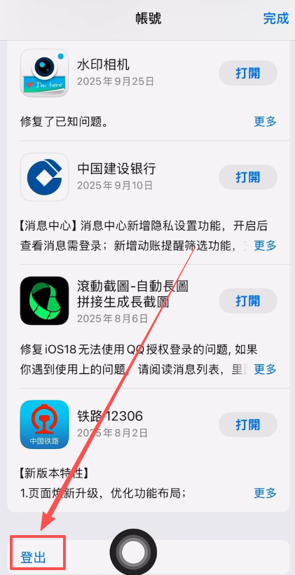 往下滑,点击【登出】。登出之后,在上方进行登录就好了。