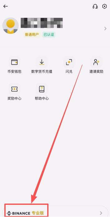 最下方有一个币安专业版的按钮,我们点击。