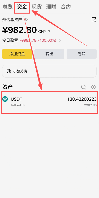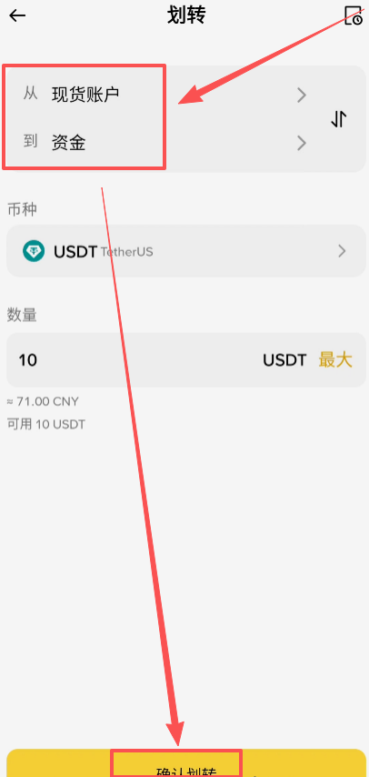 我们就把USDT通过划转的功能,都给它划转到资金账户里面,然后同意再进行出金。我们从“现货账户”把USDT划到“资金账户”,点击【确认】。就划转完成了。
