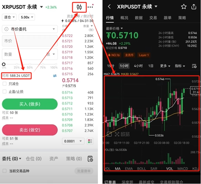 下面为你简单操作一下欧易合约的开仓和平仓操作。