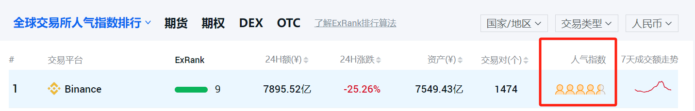 我们看下非小号的官方统计,从交易量来说,都是第二名的三倍,人气指数也是非常高。可以说是做实了币圈老大的位置。