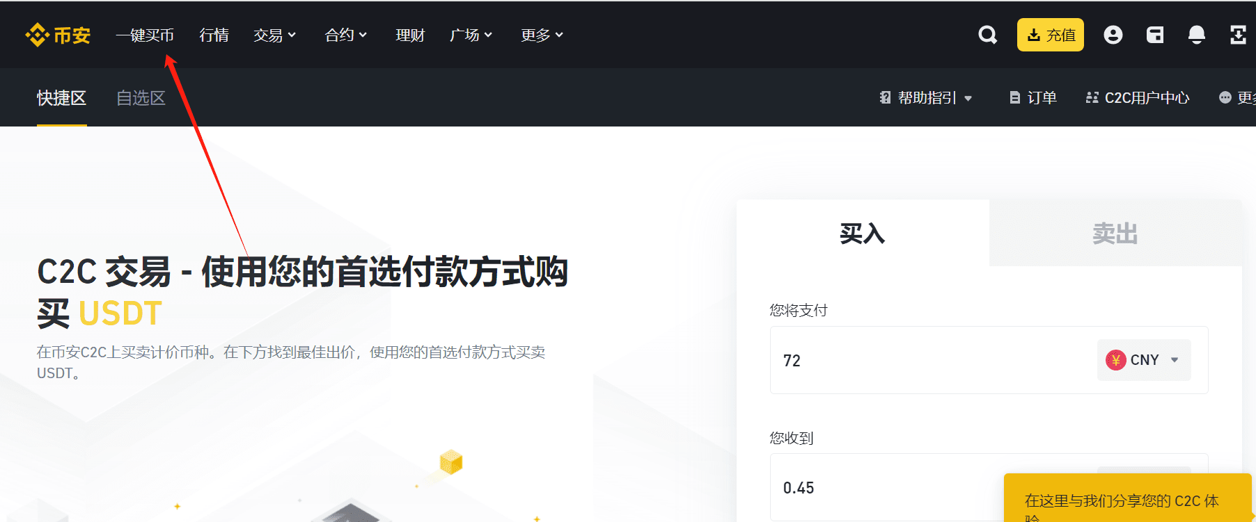2.进入快捷区买币